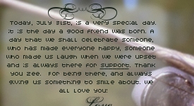 Happy Happy Happy Birthday ZEE!! Yay! Thank you for being a friend, and