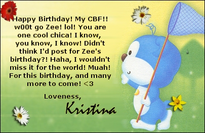 Happy Happy Happy Birthday ZEE!! Yay! Thank you for being a friend, and